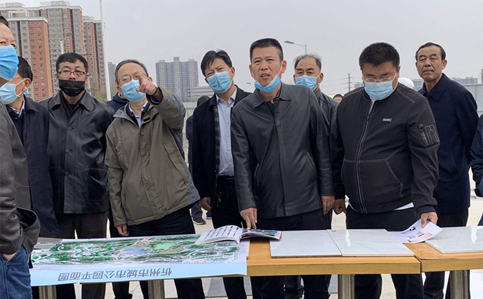 4月10日,忻州市委書記鄭連生、市委副書記、代市長朱曉東在我公司忻州慕山公園工地調研。
