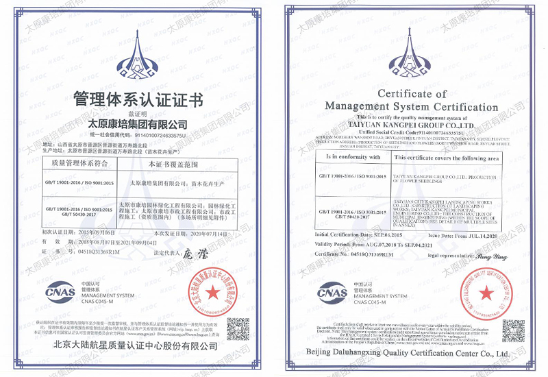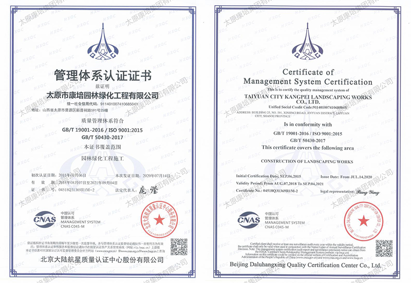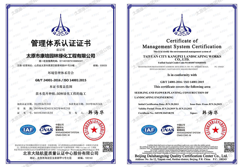 公司現(xiàn)有施工機(jī)械2000余臺,在太原、忻州、晉中、運(yùn)城等7個地市有苗木基地,擁有從花卉苗木培育到園林景觀綠化測繪施工再到養(yǎng)管維護(hù)的園林景觀綠化和生態(tài)環(huán)境修復(fù)全產(chǎn)業(yè)鏈,完成和參與了包括省、市重點(diǎn)工程在內(nèi)的1000余項(xiàng)園林景觀綠化、道路綠化、城市改造、市政工程和生態(tài)環(huán)境綜合治理工程,施工足跡遍布全省,超百項(xiàng)工程獲得國家、省、市優(yōu)質(zhì)工程表彰,通過了ISO9001質(zhì)量管理體系認(rèn)證。